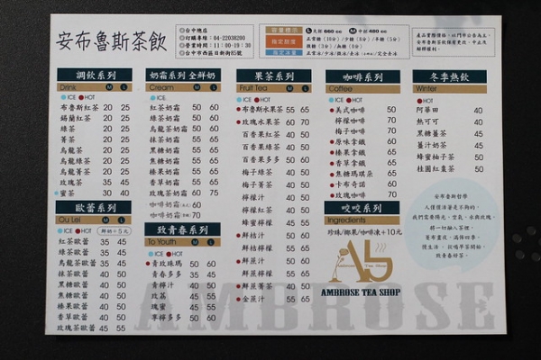 安布魯斯茶飲Ambrose Tea Shop 菜單