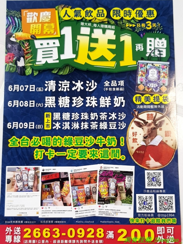 慶開幕6/7-6/9這三天會推出不同的飲品、冰沙買一送一,