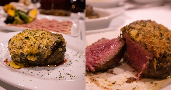 #菲力佐香料蟹肉 費用和其他兩款純肉套餐只吃差「一百塊」,是不是真的超級划算!採用頂級藍蟹肉搭配獨家的紐奧良辛香料配方,超大塊的蟹肉還能吃到一絲一絲的口感,這款絕對CP直爆表!
