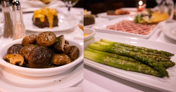 配菜也有三種可以選擇,份量多到誇張,全家一起吃一份都綽綽有餘,喜歡吃蒜的朋友可以選擇 #蒜烤香菇 (圖左) 兩種不同的菇類混合,搭配香濃的蒜香和奶味,香氣非常足夠但完全不會過鹹、膩口。 #新鮮烤蘆筍 (圖右) 茹絲葵連蘆筍的品質也不馬虎,經過簡單的烘烤,每一隻都又甜又多汁。