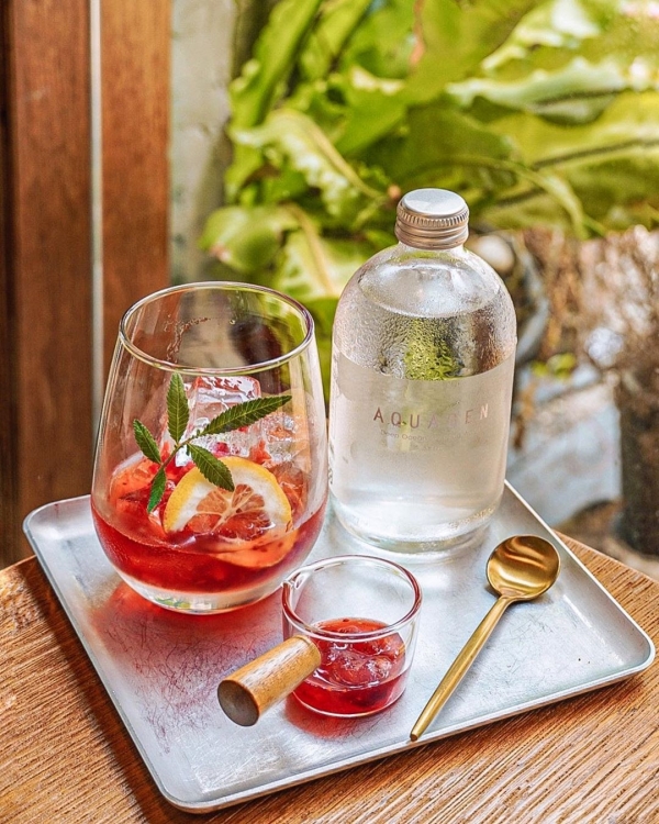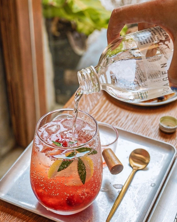 店家自製的莓果醬,加入AQUAGEN氣泡水,酸酸甜甜的很有層次!超適合點一杯在這個夏天!