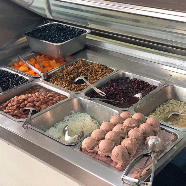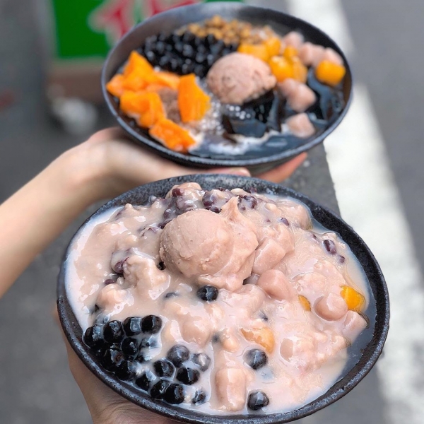 不僅只有芋泥球,還可以吃到芋頭塊超過癮!剉冰必備多種配料,還有珍珠、紅豆、芋圓!