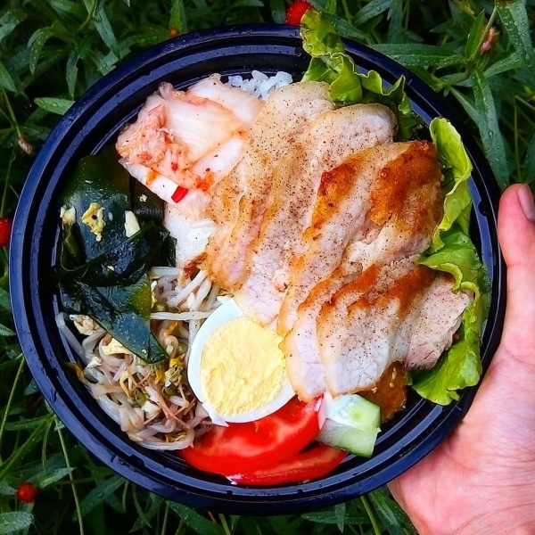 烤豬不油膩,份量也很大方,烤豬肉吃起來有一點焦脆,越嚼越嫩!配料部分有南瓜泥、水煮蛋,份量很飽滿,清爽少油營養均衡。