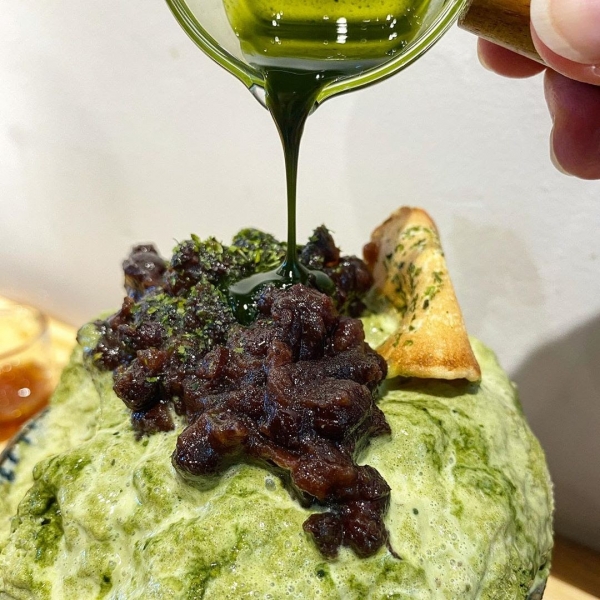 抹茶粉撒在綿冰上,彷彿岸邊的綠藻,吃起來口感柔滑,以自然農法種植的萬丹紅豆,加上在地媽媽用心熬製的蜜紅豆,顆顆飽滿,無破損,非常好吃!跟抹茶意外地搭,店家還在紅豆上頭加上石蓴粉,可以聞到大海的味道!還有手工抹茶凍,增添軟Q的口感!