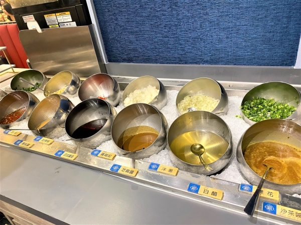 醬料區有必需的沙茶醬,及許多各式各樣的醬料,可以任你自由搭配!桌上也有好吃秘訣教你如何調製,最適合一起享用的!