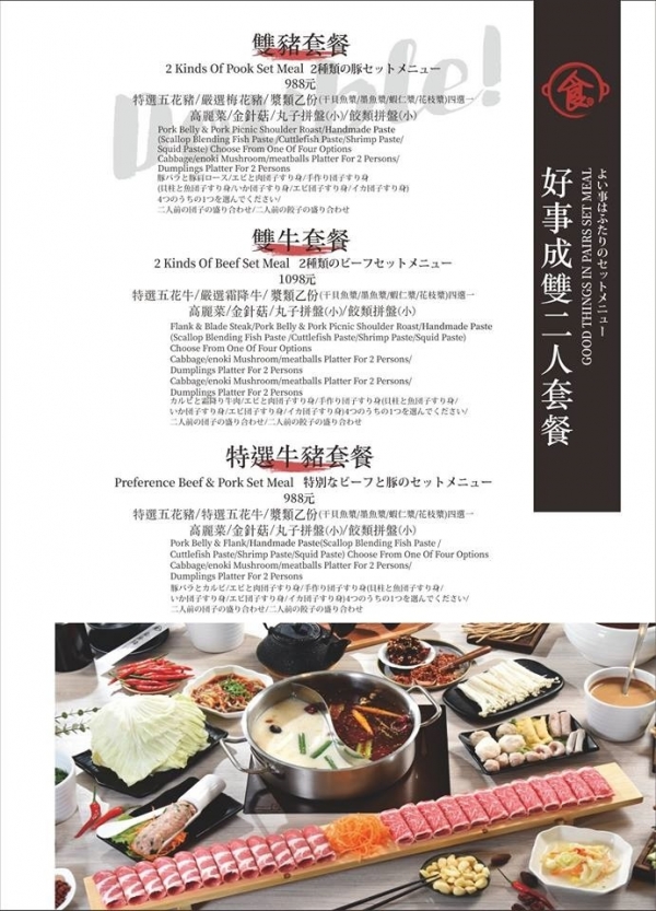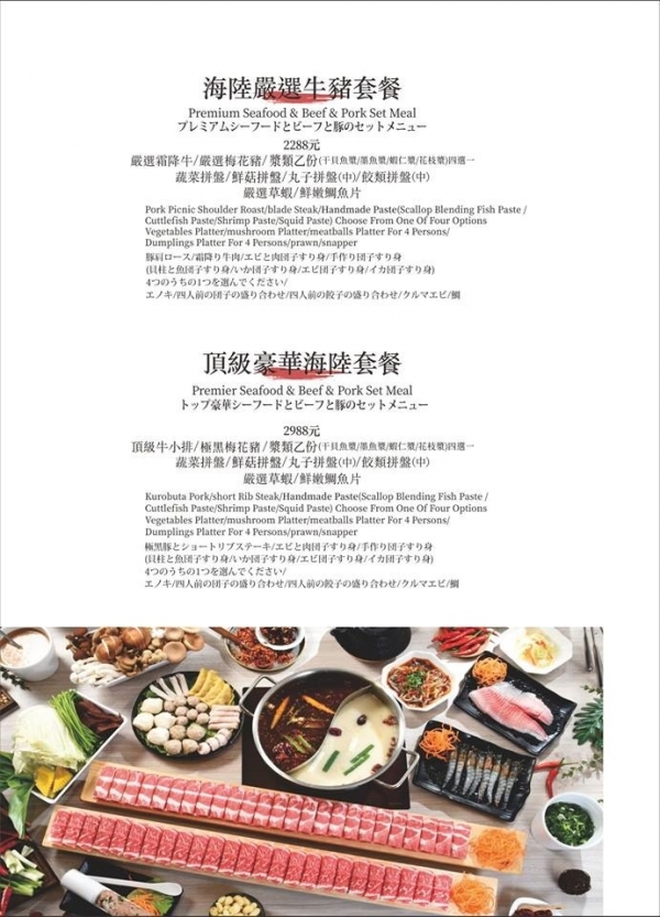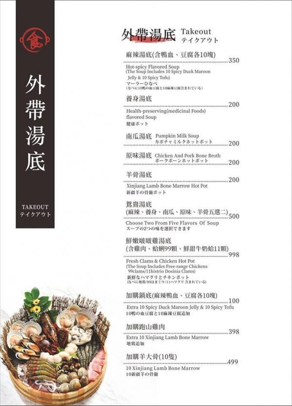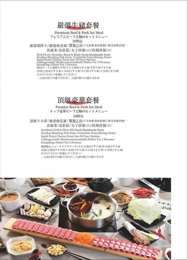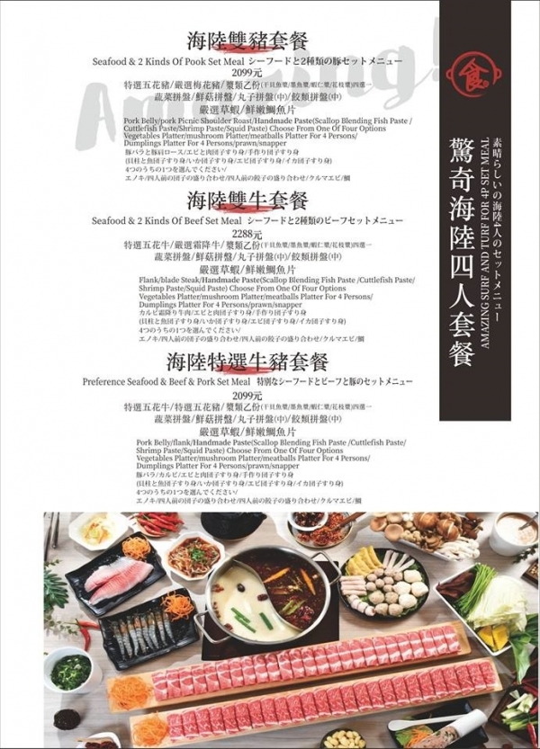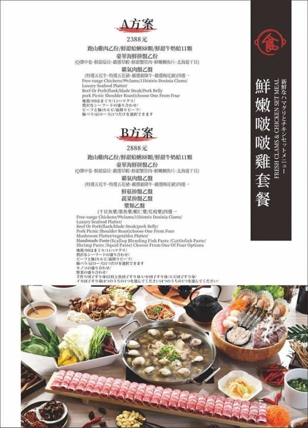 後3種要加價99元,另外選擇麻辣鍋需收鍋底費用每人120元,