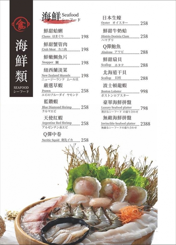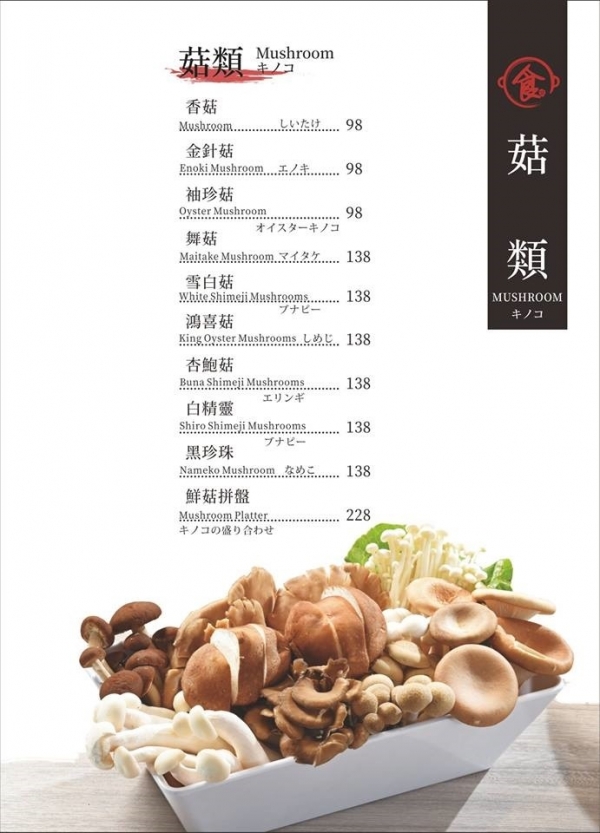 單點品項還蠻多的,有肉品、海鮮、蔬菜、菇類、手工漿、