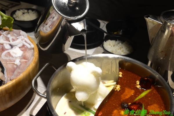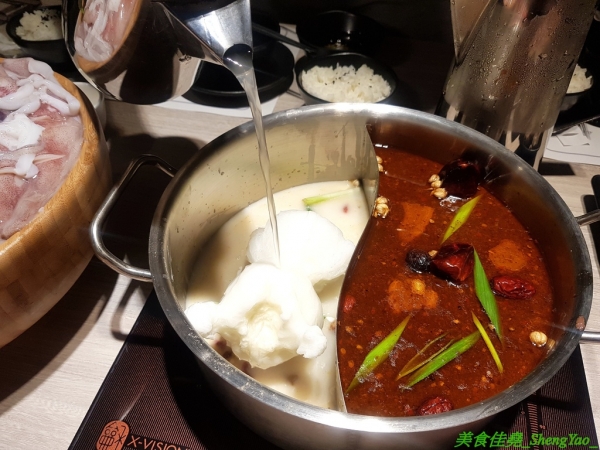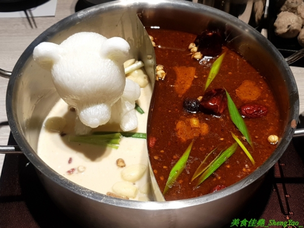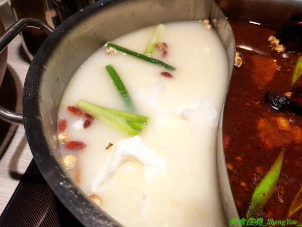 湯底我們選擇了麻辣鍋加養生牛奶鍋,