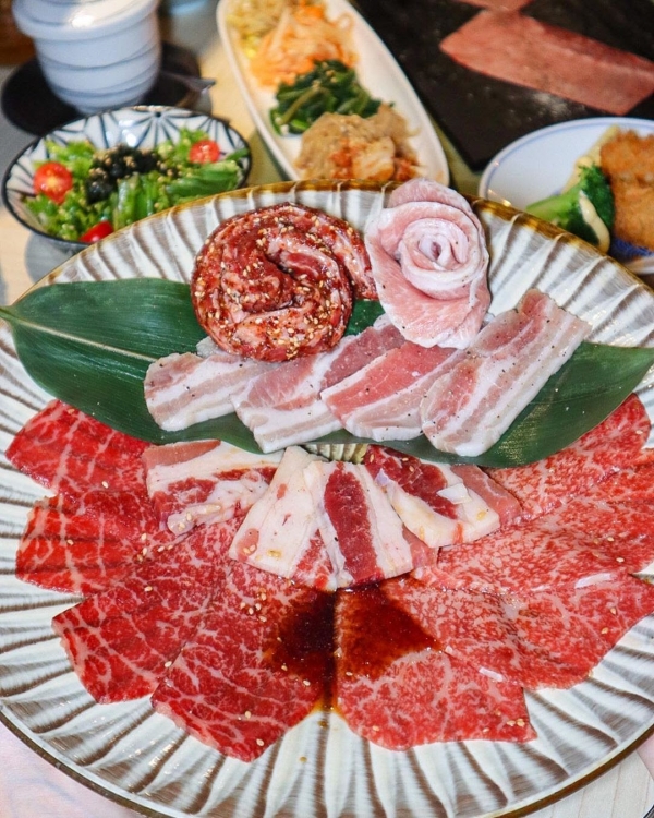 肉品包含,堪能和牛燒肉、澳洲產極品薄長牛舌、日本產A5牛里脊肉、A5上等牛里脊肉、美國產牛五花、旨辛牛五花、豬五花、松阪豬,這些上等的肉品也經過特製醬汁醃製調味過,讓肉品增添一番風味!
