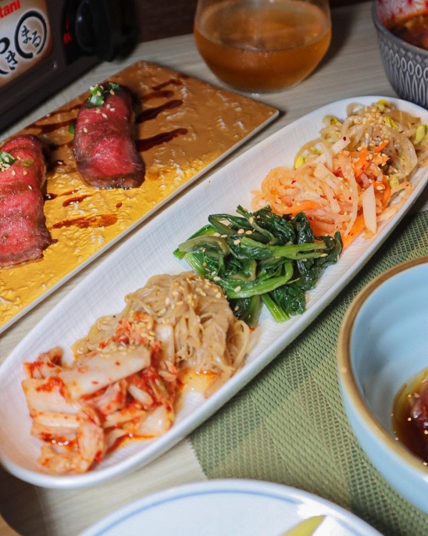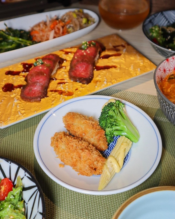 吃韓式料理一定會附上的小菜,就在這日式居酒屋氣氛吃著泡菜!很不一樣的感覺!附餐含有烤和牛握壽司、起司烏魚子茶碗蒸、韓式生菜沙拉、炸牡蠣、辣牛肉湯、甜品