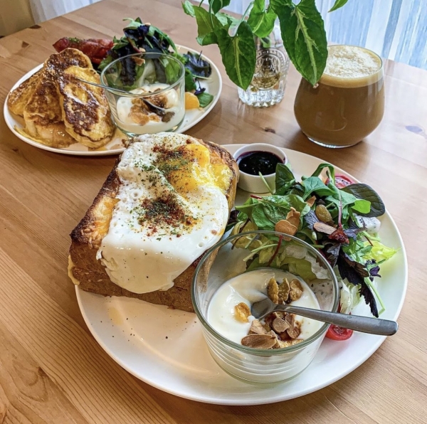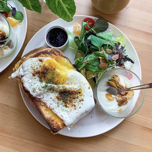 店內幾乎每一桌都有點這盤!內含炭烤里肌豬肉、起司、自製白醬、太陽蛋、水果、貝比沙拉、堅果以及自製果醬優格!(Instagram照片授權:bo__food)