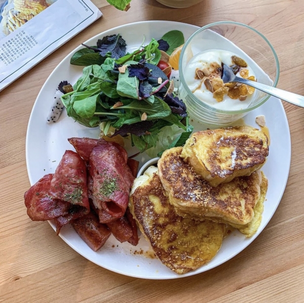配料有培根、德式香腸、水果沙拉及優格,還有三片淋上糖漿的蛋烘軟法,推薦喜歡甜食的朋友可以做選擇~(Instagram照片授權:bo__food)