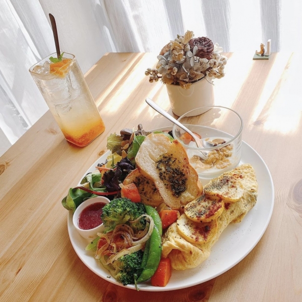 拼盤搭配非常豐富,清爽優格、多量蔬菜、少量水果、抹上青醬的酥脆麵包和營養的歐姆蛋!(Instagram照片授權:foodywendy1004)
