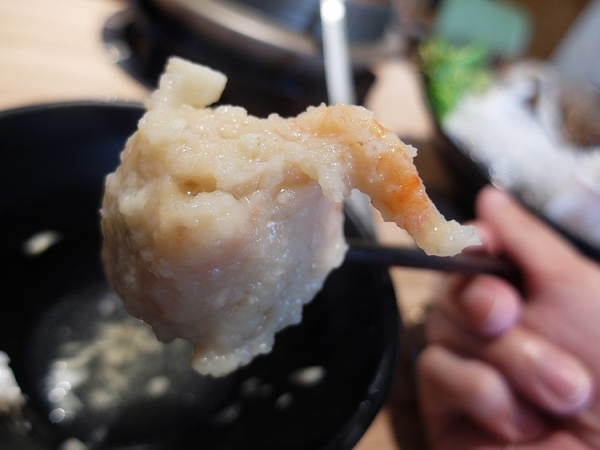 還露出尾巴這樣,漿煮過後變得很有彈性,與蝦子搭配真的是很棒