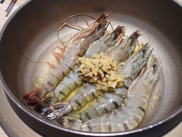 這個做法蠻特別的,讓我想到石頭炒鍋的進化版本,蝦子本身的汁液炒入了蒜泥中,