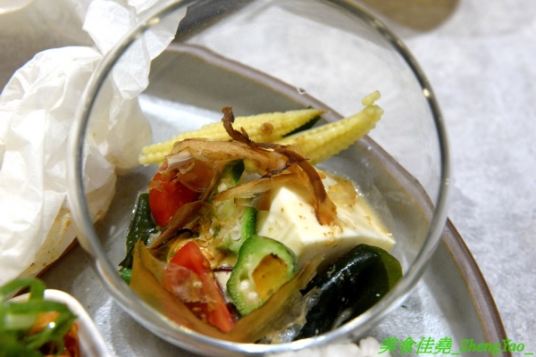 而是豆腐、玉米筍、秋葵、海帶芽、柴魚片...等,