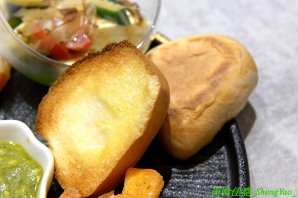 烤過的麵包吃來有微微奶香,口感沒有像外表看起那樣酥硬,單吃就不錯吃。