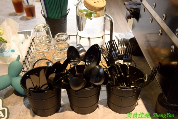 餐具和薄荷水自取。