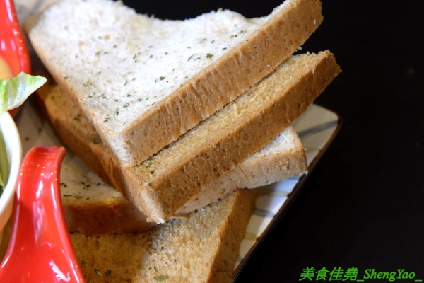 陰陽吐司就是白吐司和黑糖吐司,口感有點乾軟,