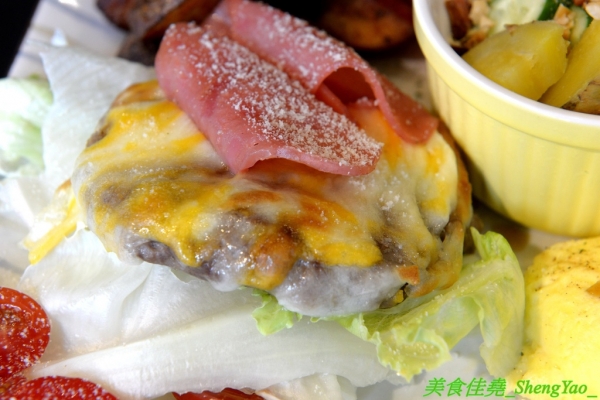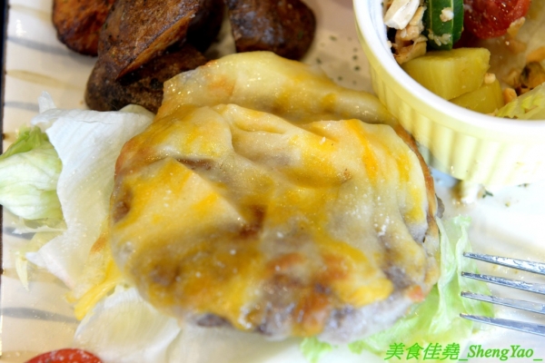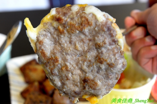上面那塊起司好好吃,不過主角當然還是這牛肉漢堡排,