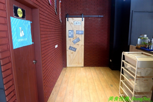 我最喜歡這一塊紅磚牆區,尤其那扇木作的廁所門,設計得實在太有意思了
