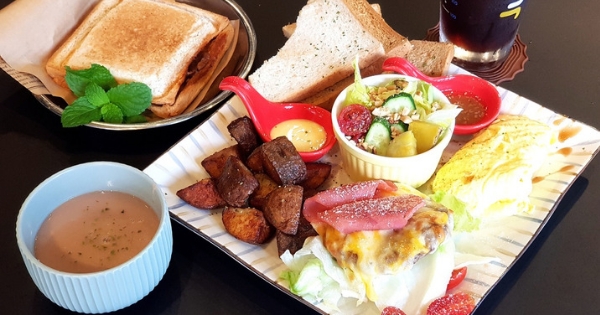看心情沙拉、歐姆蛋、濃香起司、陰陽吐司,
