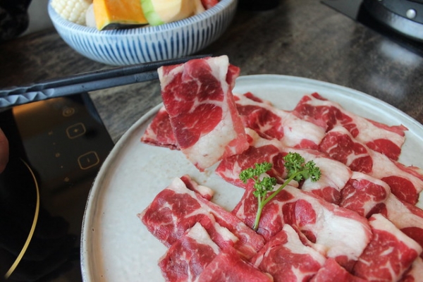 取自牛的肩胛部位,油花分布均勻,呈現大理石的紋路,