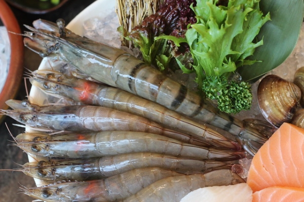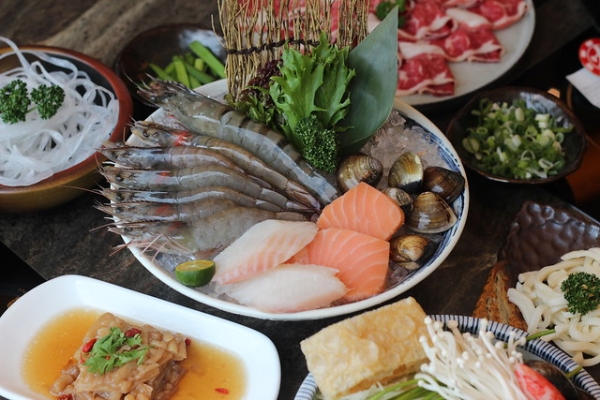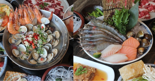 「海鮮總匯」有大草蝦、白蝦、蛤蜊、鯛魚片以及鮭魚片,