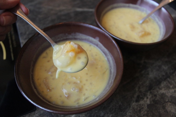 吃起來芒果味道較為突出,很喜歡西米露在裡頭點綴的效果,顆粒感豐富整碗的層次。