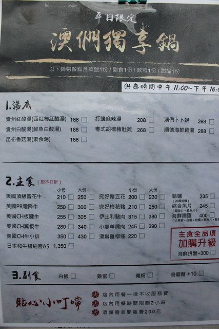 ▲店家櫃檯,平日獨享鍋有供應時間,大家來的時候要注意唷,