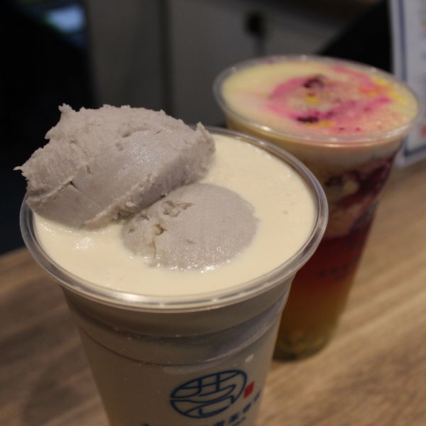 使用手工製作的芋泥加奶茶調製,吸得到芋泥,
